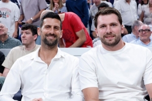 体育资讯4月17日讯 今日,皇家马德里篮球队官推晒出一张图片,湖人球星东契奇与与网坛球星德约科维奇一同在马德里现场观看皇家马德里与贝尔格莱德红星之间的欧冠篮球常规赛对决。